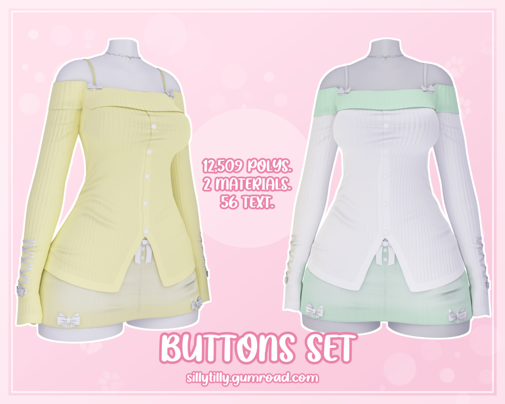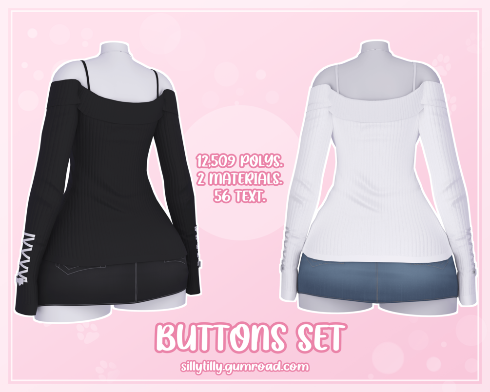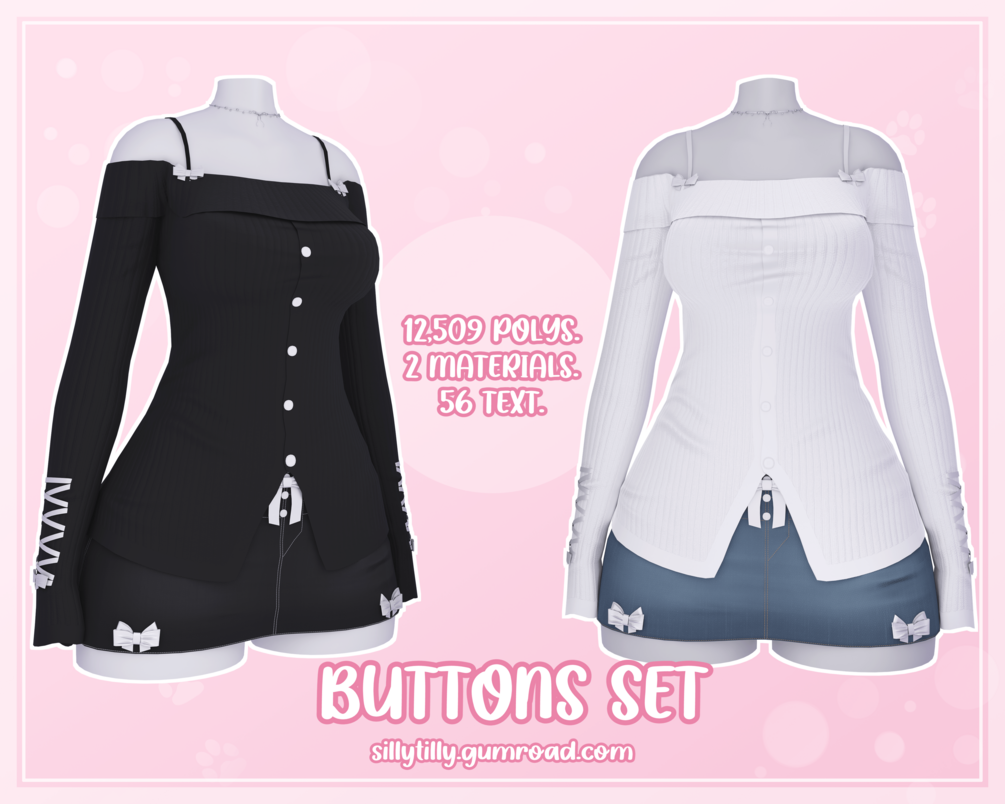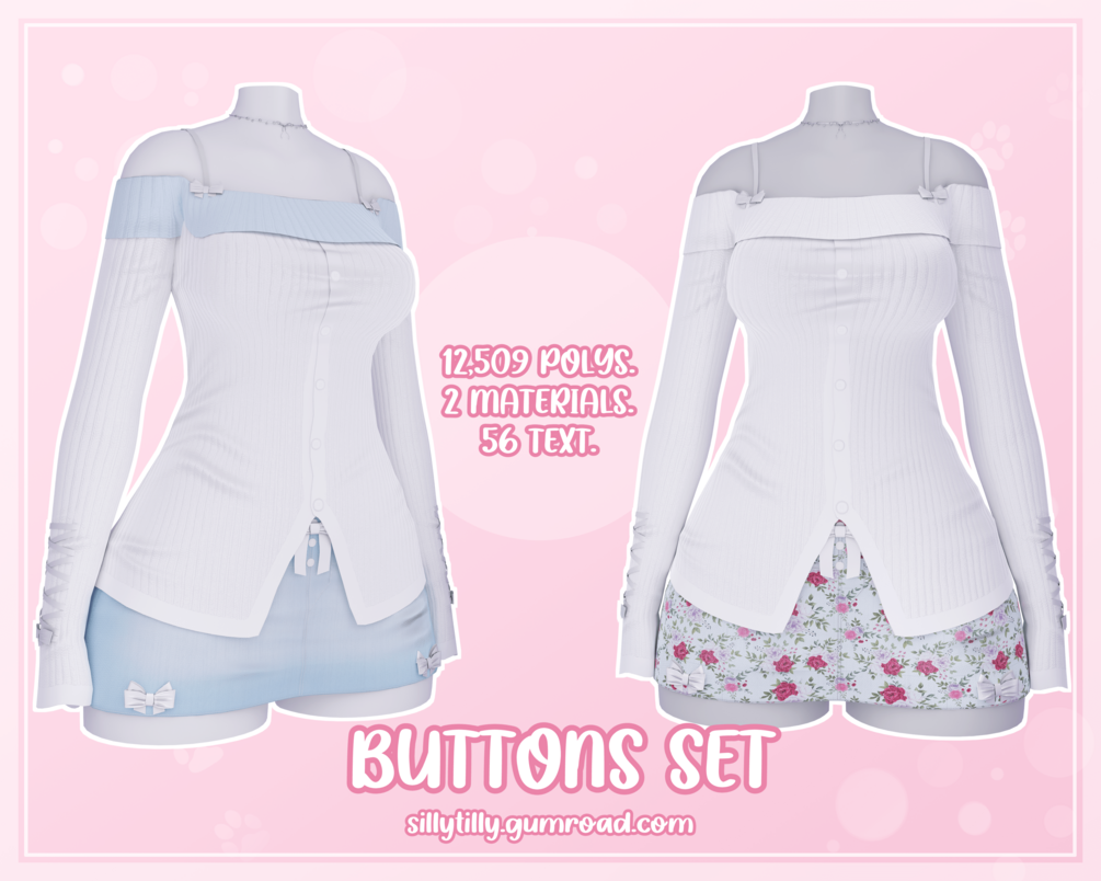 Buttons Set - Off Shoulder Top, Skirt & Necklace
