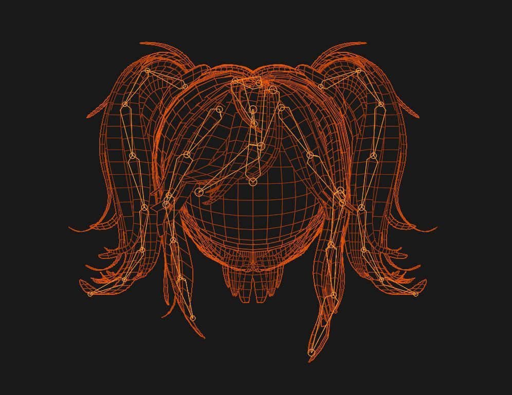 Scratch hair made by me in blender, 14.7K polys, around 28 bones :)