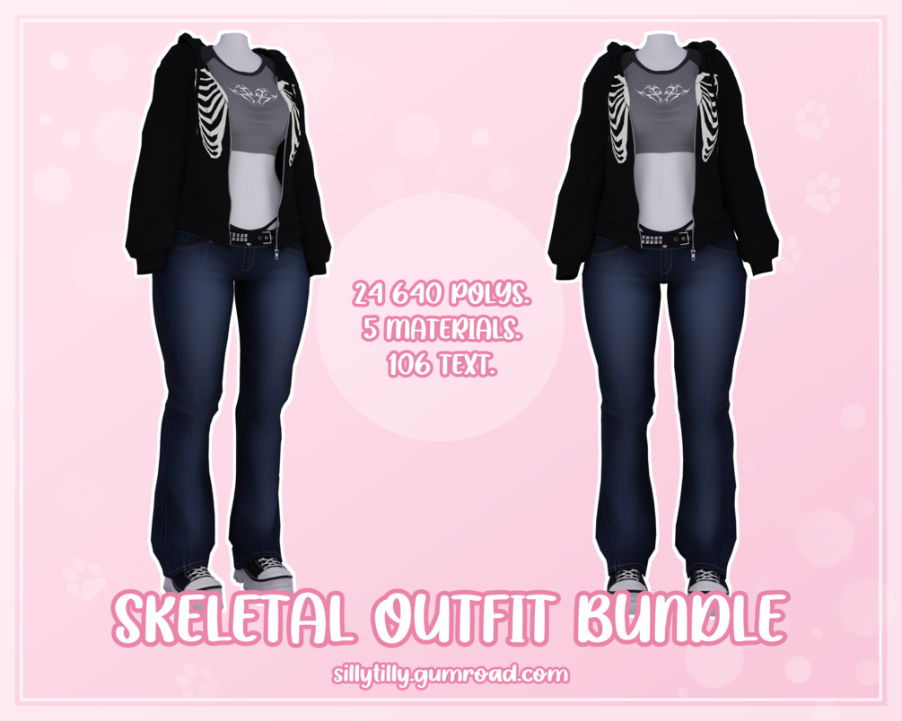 Skeletal Full Outfit Bundle - Jacket, Crop Top, Flared Jeans & Bottoms