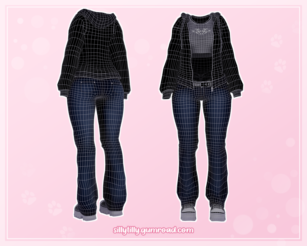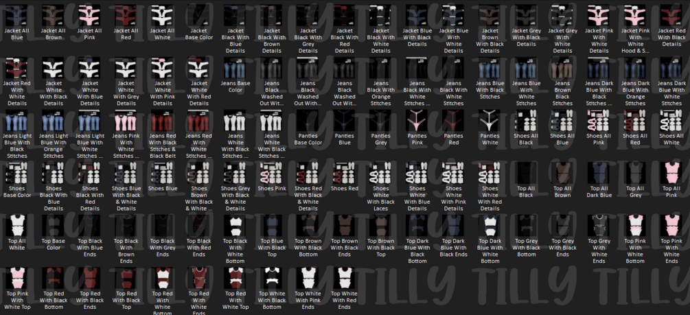 ╰┈➤ 5 Materials (jacket, top, jeans, bottoms & shoes).